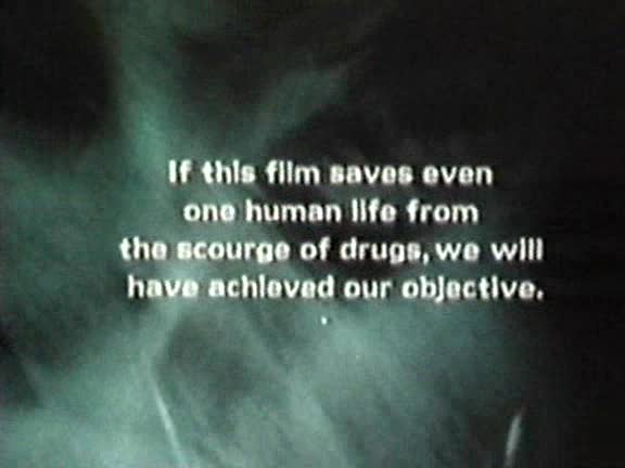 Note the striking parallel with the similarly moralistic intonation found in the opening scroll in Stelvio Massi's shockumentary Drugs: A River of No Return (aka Droga sterco di Dio) (1986) - "if it succeeds further in helping to free one human being from slavery, it will have served its purpose and justified the risks"; "If this film saves even one human life from the scourge of drugs, we will have achieved our objective".